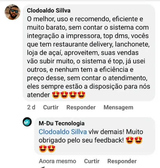 Tipos de entrega: Delivery, retirada no balcão e consumo no local |